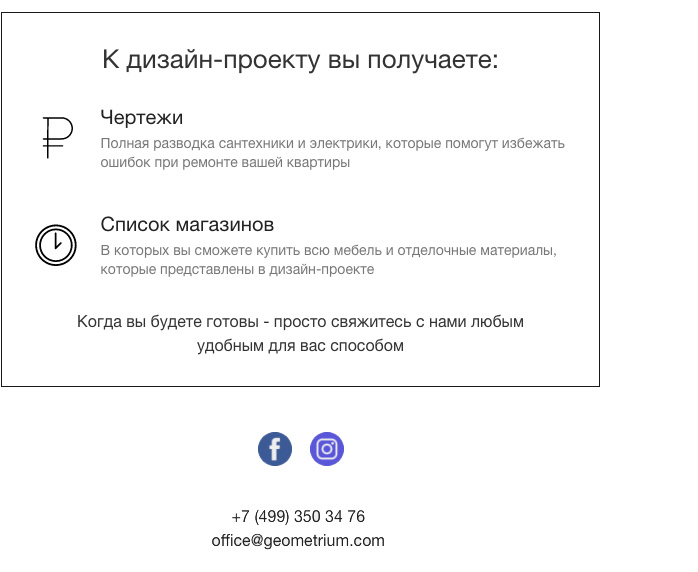 В них нет ни одной фотографии, хотя студии предоставляют услуги дизайна интерьеров, где визуальная часть - самое важное. Текст написан просто в Яндекс.Почте неприятным шрифтом.